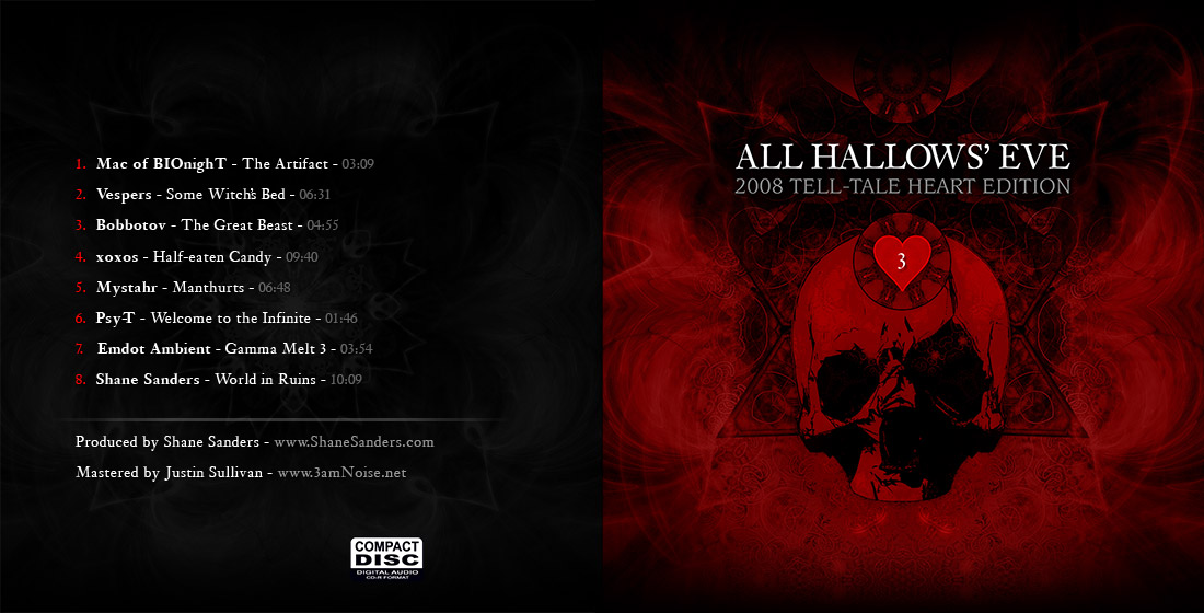 Disc 3 1. Mac of BIOnighT - The Artifact 2. Vespers - Some Witch's Bed 3. Bobbotov - The Great Beast 4. xoxos - Half-eaten Candy 5. Mystahr - Manthurts 6. Psy-T - Welcome to the Infinite 7. Emdot Ambient - Gamma Melt 3 8. Shane Sanders - World in Ruins |